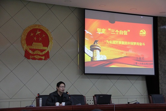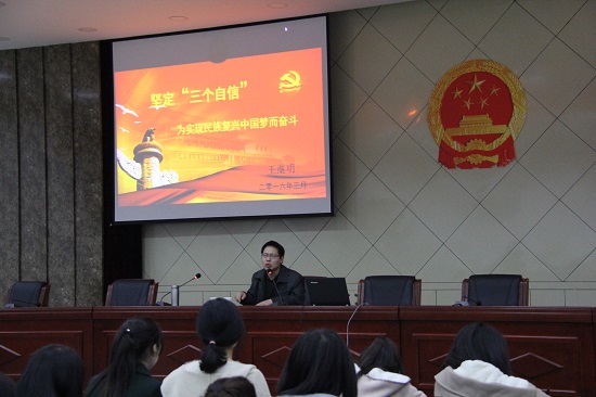 在王老师富有激情的讲演中,同学们更加坚信在“三个自信”的指引下,中国共产党能够坚持走自己的道路、完善自己的理论、实施自己的制度。“不动摇、不懈怠、不折腾”,“顽强奋斗、艰苦奋斗、不懈奋斗”,带领全国各族人民“赢得主动、赢得优势、赢得未来”。