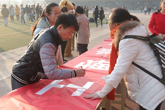 2015年12月6日,必赢3003no1线路检测中心2015年校园吉尼斯挑战赛在明向校区成功举办。此次挑战赛活动吸引了全校各学院共计1300人参加,校团委副书记闫新老师、我院团委书记贺婧老师、我院辅导员姜昆老师、校研究生会代表王旭博出席了挑战赛的开幕式并和同学们一起参加了激烈精彩的比赛。