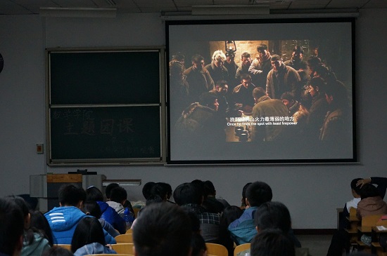 今晚开展了主题教育影片观赏,此次观赏的影片是《智取威虎山》,它是由十分经典的革命题材样板戏《林海雪原》改编而成的。电影中的战士们在大雪中与敌人们斗智斗勇,对死亡丝毫不畏惧。电影中讲述的不仅是解放战争初期的剿匪斗争,所表现的更是一种智慧,一种勇气,一种精神。在场的同学们无一不被电影中革命军人的顽强斗志感动,大家目不转睛地盯着屏幕,好像融入其中,连神情也与电影中扣人心弦的情节紧张起来。电影结束后现场响起了热烈的掌声,同学们心中颇有感慨,并派两名代表上台发表感想。